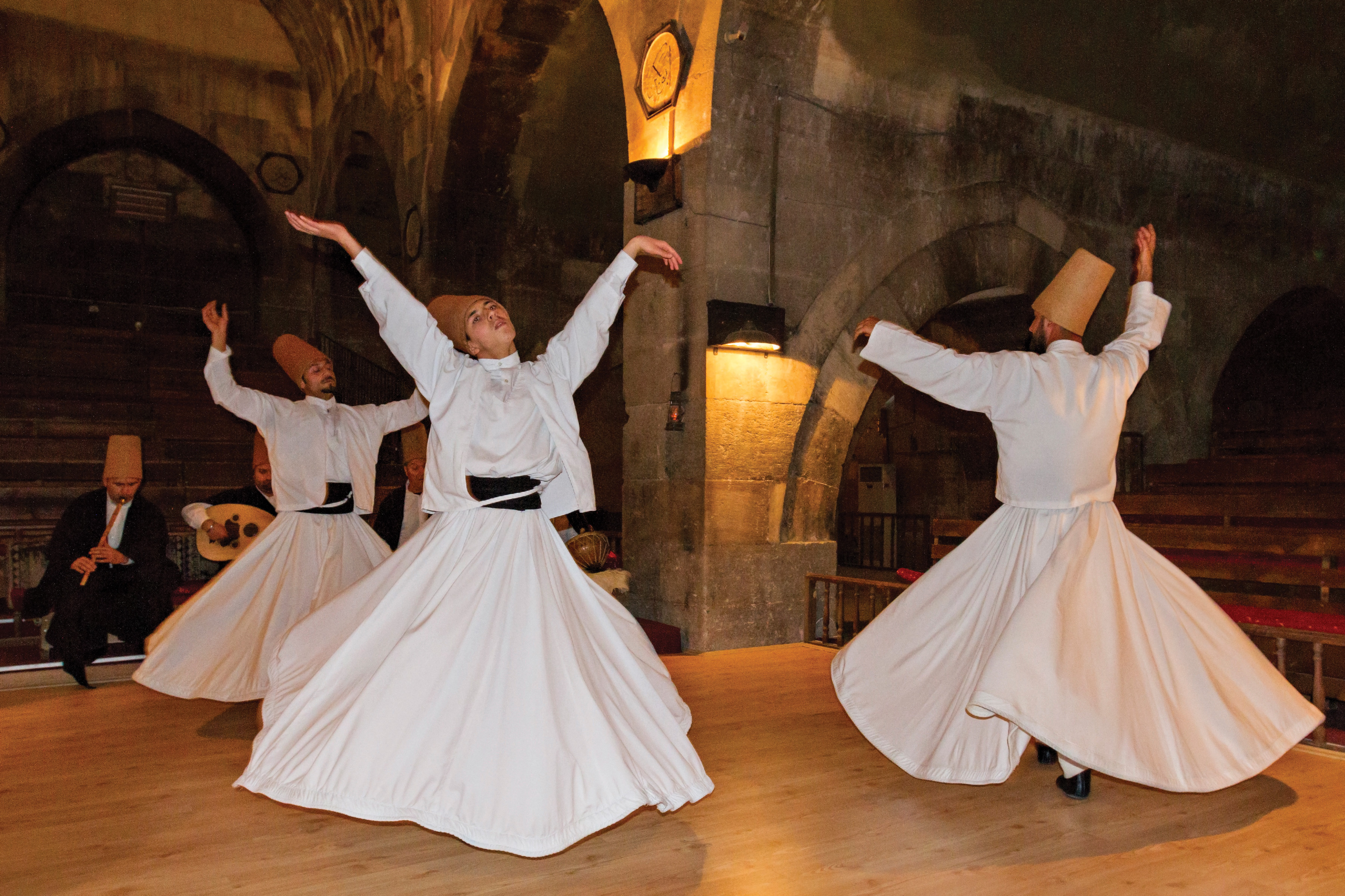 We take our seats in the front row of the dimly lit room. The music begins quietly, with the unfamiliar sounds of ancient instruments filling the air. A singer joins in with a haunting melody. The whirling dervishes enter and stand serenely, waiting. Oh-so-slowly, the first dervish begins to spin, and one by one, the others join in, their faces trance-like. As they whirl, one hand is raised towards the heavens, while the other points down towards the earth, signifying the connection between the divine and the earthly realms. We sit mesmerized as the spinning increases in intensity, the flowing white robes almost brushing us as they glide by. The whirling dance originated as a religious ritual, tracing its origins to the teachings of the Persian poet and mystic Rumi in the 13th century, but it has also become a symbol of Turkish culture. The visual beauty of the dance, combined with the music and robes creates a captivating spectacle.