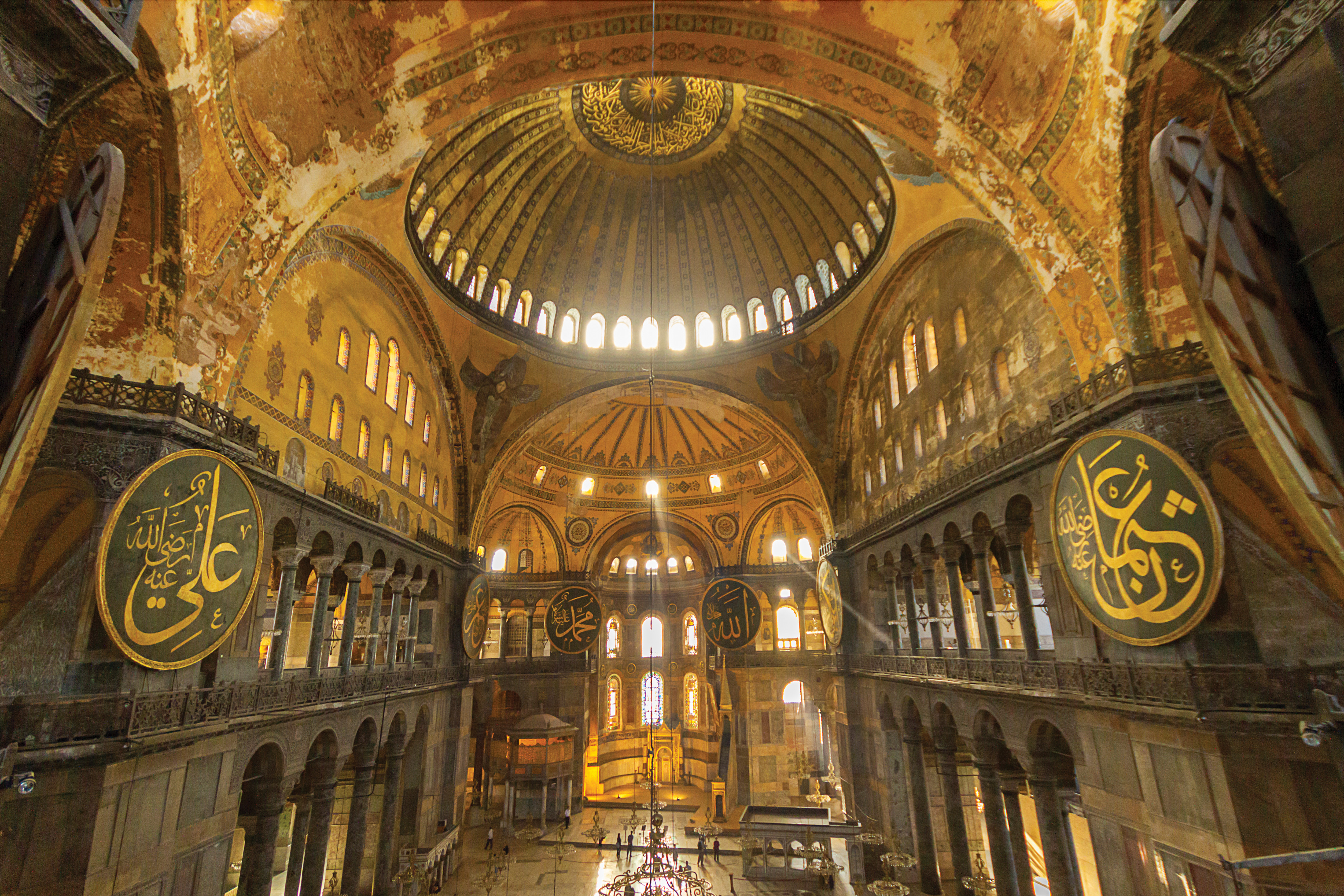 I’m getting dizzy, but still I can’t stop gazing heavenwards, awe-struck by the domes and magnificent tiled ceilings of Istanbul’s mosques and palaces. The breathtaking Hagia Sophia is a masterpiece of Byzantine architecture, originally built as a cathedral in 537 AD under Emperor Justinian I. Following the Ottoman conquest in 1453, it was converted into a mosque. In 1935, it became a public museum. Today, it once again serves as a mosque, although vestiges of its Christian origins are still visible if you look closely. The main floor these days is reserved for prayer, but the mezzanine is open to visitors. Topkapi Palace was the opulent residence of Ottoman sultans for nearly 400 years. Set above the Bosphorus, the palace features grand courtyards, intricately tiled rooms, a treasury filled with jewels and the elaborately tiled Harem, once the private quarters of the sultan’s family and concubines.