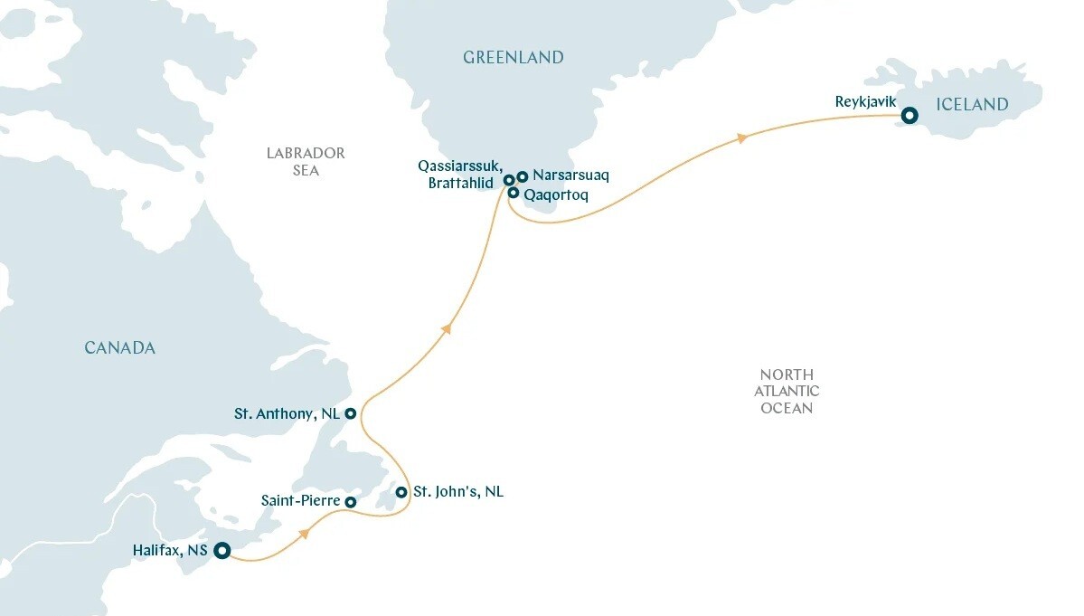 A Swan Hellenic cruise to Greenland is meant for the explorer at heart, and the seeker of the extraordinary. While others follow well-worn paths, Swan Hellenic takes you beyond ordinary, revealing the unseen wonders of the world’s most remote and fascinating destinations aboard their boutique expedition ships. On May 18, 2026, embark on a captivating journey from the vibrant port city of Halifax, Nova Scotia to charming Reykjavik, Iceland, which takes you across the North Atlantic, and visits various scenic destinations such as St. John's, Newfoundland, the oldest city in North America, a slice of France in Saint-Pierre and Miquelon, and the intriguing south shores of Greenland before reaching Iceland's contemporary capital.