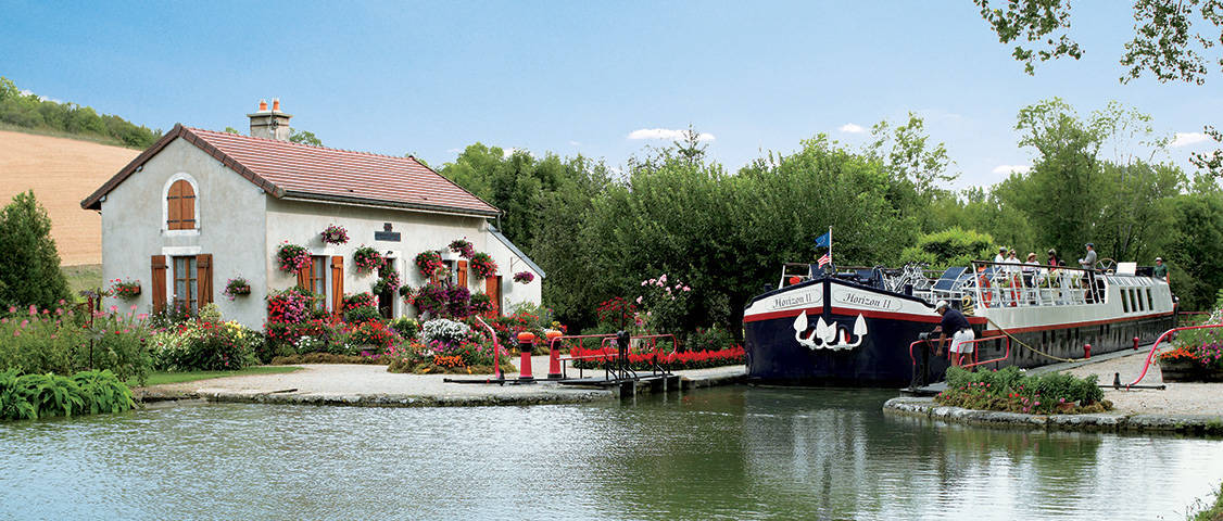 These fully-inclusive fares include exclusive private tours and wine tastings, a dinner at the Michelin-starred Maison Medard, fully-stocked open bar and all wines, many from Grand Cru and Premier Cru vineyards, dozens of tantalizing French cheeses, innovative cuisine from a talented onboard chef, a private motorcoach, and the opportunity to enjoy independent walks or bicycle explorations along the canal-side towpath and small nearby villages. A welcome home spirit from the friendly, bilingual crew contributes to the relaxing, familial and rejuvenating atmosphere aboard the Nenuphar, with its six king suites, antique provincial furnishings, and elegant decor - reminiscent of the finest country house hotels.