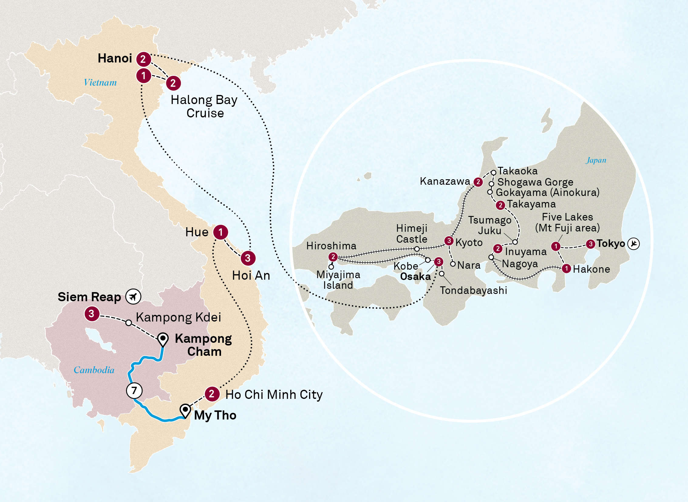 Take in the stunning breadth of South East Asia’s cultural diversity and natural wonders on a 41-day Grand Journey from Japan to Cambodia. Begin with the very best the ‘land of the rising sun’ has to offer on a handcrafted Scenic land tour filled with exclusive Enrich events and varied Freechoice experiences. Dine with a geisha, play Taiko drums and create washi paper as you venture from Tokyo to Osaka over 20 captivating days in signature Scenic comfort. Afterwards, you’ll transfer to the Vietnamese capital Hanoi for a deep and fascinating immersion into Vietnam. Cruise the emerald waters of Halong Bay, discover the street food of Hoi An and bask in the metropolis of Ho Chi Minh City before boarding the 5-star Scenic Spirit for a seven-night all-inclusive ultra-luxury cruise along the spectacular Mekong and into Cambodia. There, you’ll uncover spiritual traditions and find wonder and harmony at Siem Reap and the legendary Angkor Wat. Much more than a land and river tour, it’s the ultimate Asian odyssey of a lifetime.