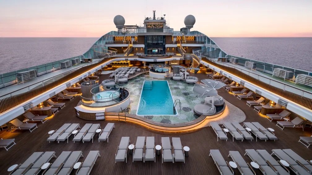 The fanfare commenced with a ship-wide cocktail reception and an exquisite dinner before moving to the pier for the ceremony and heartfelt remarks from dignitaries including the line’s Chief Luxury Officer, Jason Montague, and Chief Commercial Officer, Nathan Hickman, as well as Food & Wine publisher Tom Bair. Guests then rejoined the ship for a three-day celebratory round-trip Miami voyage.